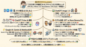 iOS 26.2とスマホ法、ChatGPT Image 1.5比較、Pulseとアプリ統合などAIニューストピックス今週のAIアップデート総まとめ2025年12月21日