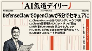 Notion 3.4のAIカスタムスキル、GeminiのChatGPT/Claude引っ越し機能、Figma AI×MCP連携、Cursor強化学習、Claude Code Auto Mode、Claude Mythosデータ漏洩など、中小企業オーナーが知るべきAI最新ニュースを解説。
