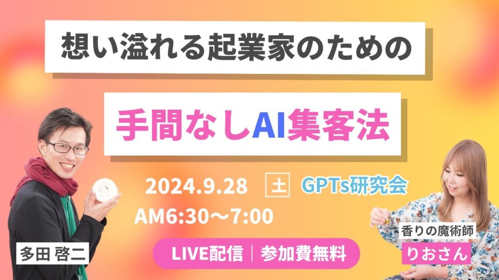 AIに苦手意識がある起業家必見!「香りの魔術師」リオさんの実体験をもとに、溢れる思いをAIで言語化し、集客を自動化する方法を解説。WACAコラボLIVEの内容を凝縮してお届けします。