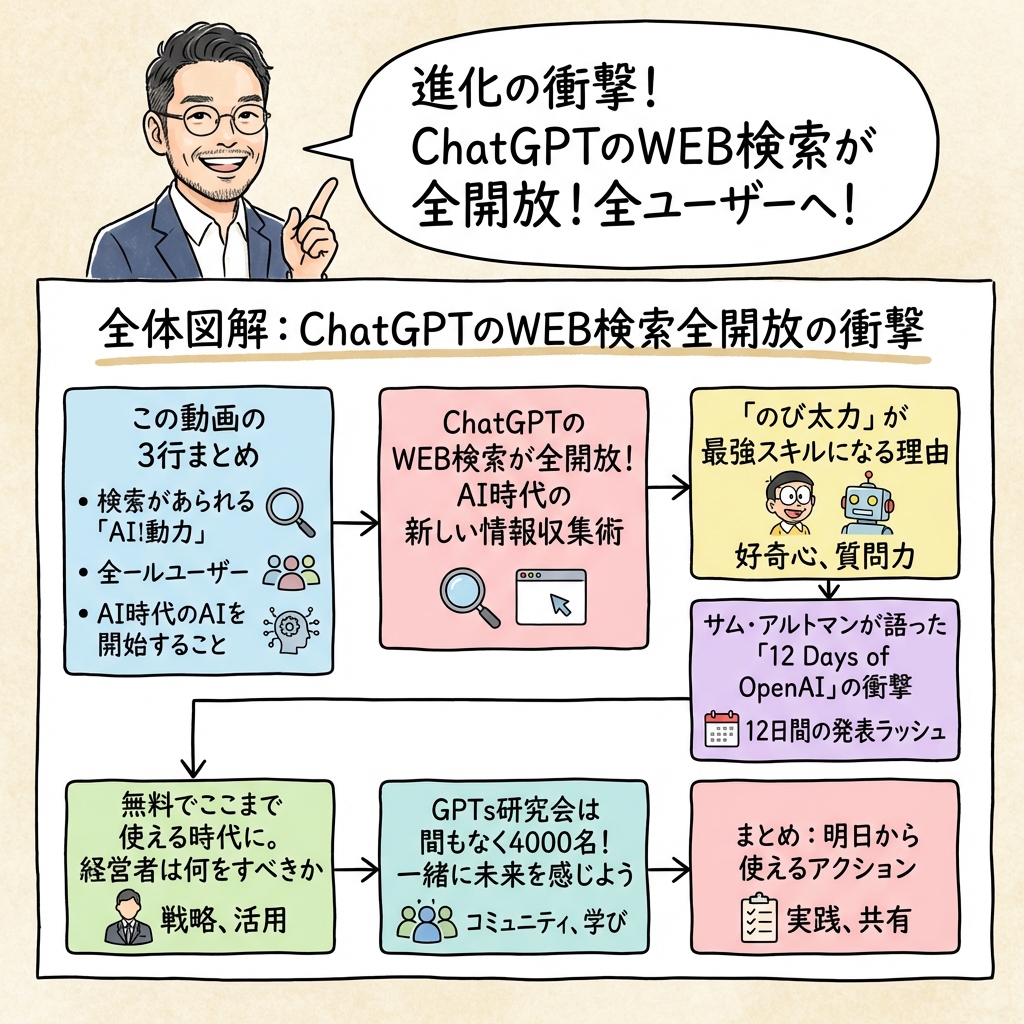 12 Days of OpenAI徹底解説:Sora・GPT-5への道筋とAI時代の生き方 2024年12月16日 / AI, Canva, ChatGPT, GPTs研究会, Sora, ひろくん(田中啓之) 【12 Days of OpenAI徹底 12 Days of OpenAI徹底解説:Sora・GPT-5への道筋とAI時代の生き方 Read Post »