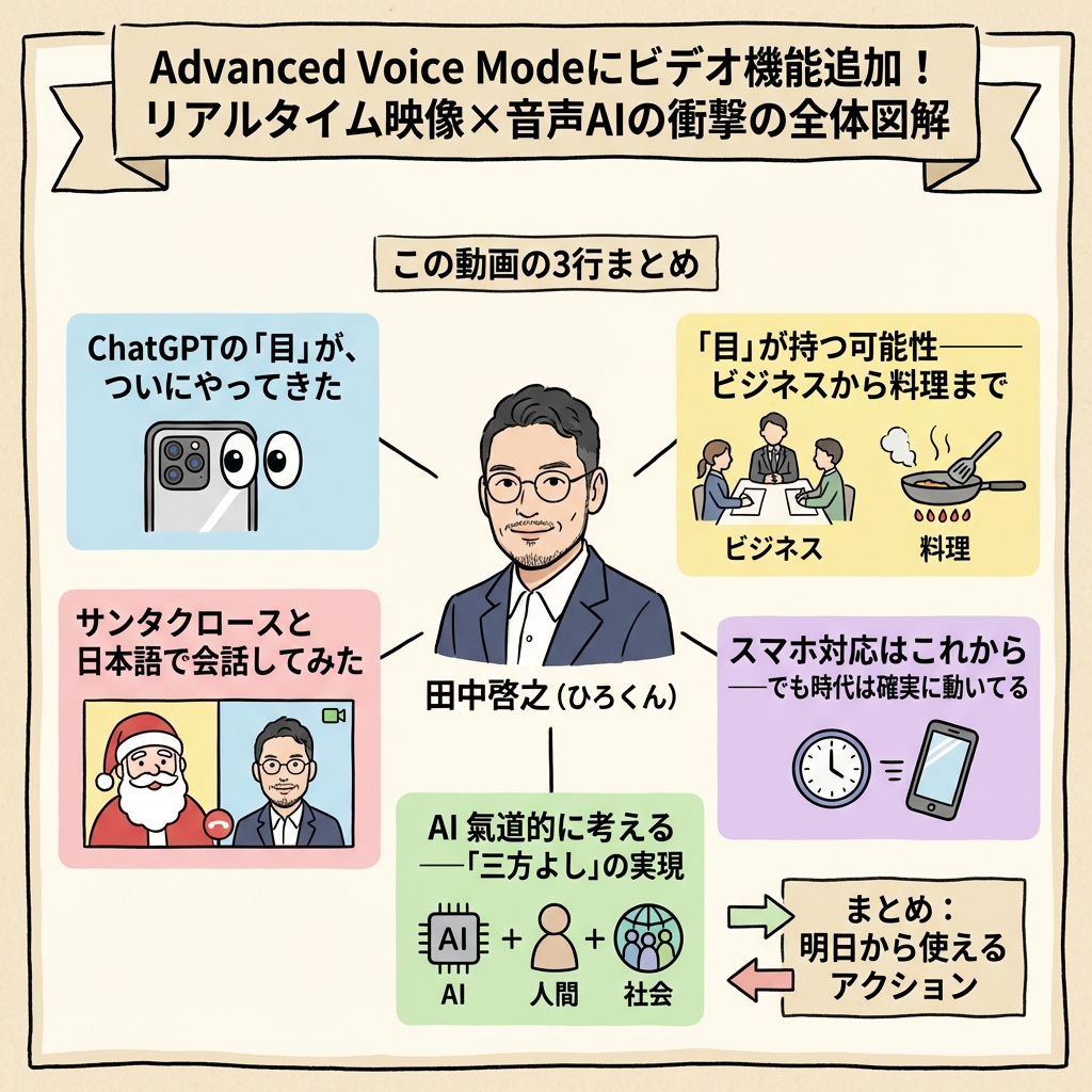 Advanced Voice Modeにビデオ機能追加!リアルタイム映像×音声AIの衝撃 2024年12月14日 / AI, AI音声, ChatGPT, GPTs研究会 最新のAI情報をキャッチアップして、ビジ Advanced Voice Modeにビデオ機能追加!リアルタイム映像×音声AIの衝撃 Read Post »