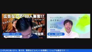 1月18日のモーニングライブが始まりました。田中啓之と多田啓二が参加者に挨拶し、最新のAI情報を共有する準備を整えています。