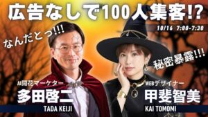 動画の冒頭、多田さんがゲストの香林美彩さんを紹介する場面。自己紹介から既にドラマが始まってる感じが伝わってきたよ。名前だけでなく、過去のキャリア(ヤマハの人事、ハウスメーカーでのWEB広告経験、学習塾経営、講師育成など)まで一気に語られるのは、聞いている側の信頼感をグッと高めます。