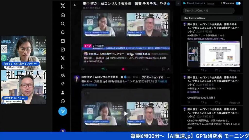 最新AI情報満載!毎日無料朝LIVE実施中!GPTs研究会では、AIツールの最新活用法を毎朝シェアしています。AI初心者の方も、ぜひAI氣道.jp無料メルマガで朝LIVEブログを毎日チェックしてくださいね。