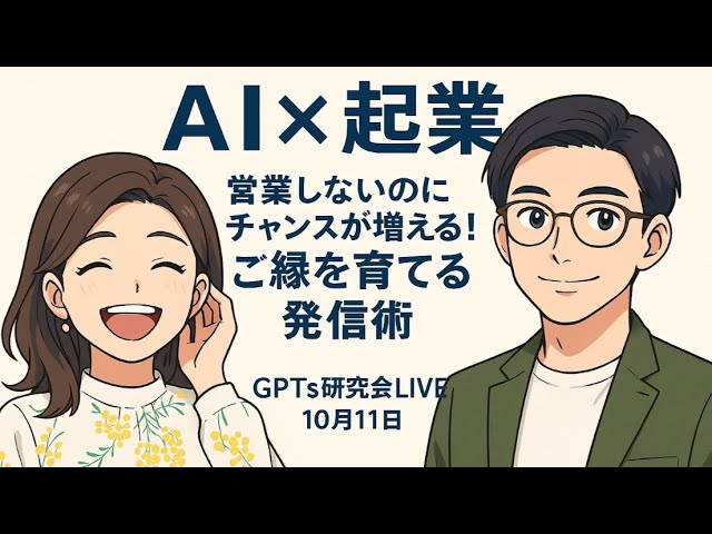 こんにちは、田中啓之(ひろくん)です。今回はAI氣道の主催で行われたGPTs研究会LIVE「AI×起業 営業しないのにチャンスが増える! ご縁を育てる発信術」(10月11日)の内容を、私の経験と哲学を交えて深掘りしていきます。ホストの多田啓二さん、ゲストにAI秘書・ライフコーチの相田ゆきさんを迎えたこのライブは、営業が苦手な起業家や発信で悩む人にとって宝のような示唆に満ちていましたよね。