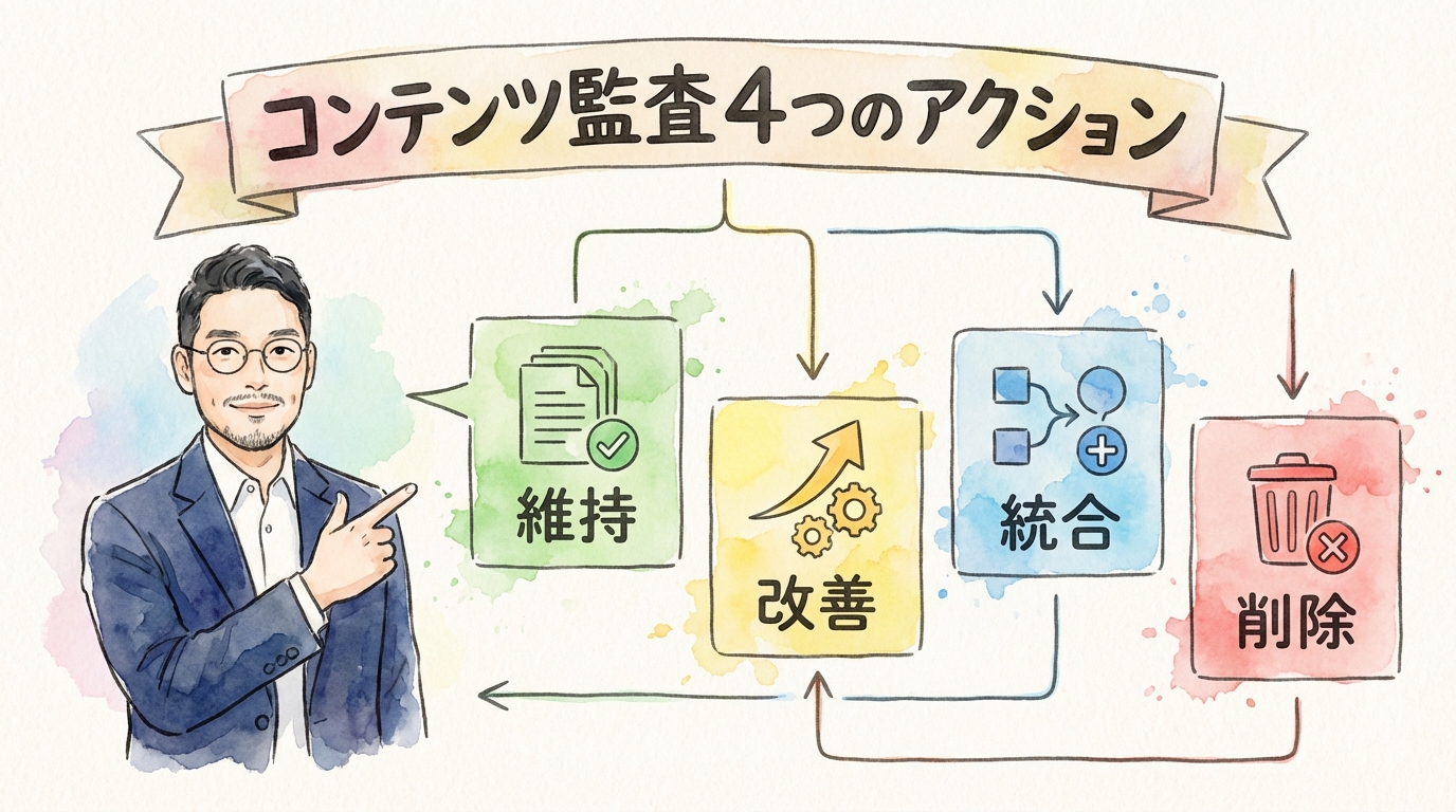 コンテンツ監査の4つのアクション——維持・改善・統合・削除