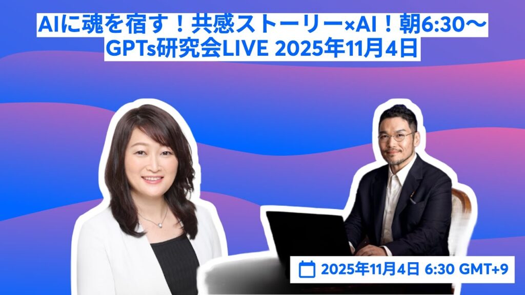 AIとの共創や「分身AI」についてもっと深く学びたい方は、最新AI情報満載の無料朝LIVEを毎日実施しているGPTs研究会や、朝LIVEブログを毎日お届けするAI氣道.jp無料メルマガへのご登録がおすすめです。一緒に学んでいきましょう!