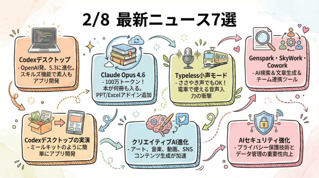 GPTs研究会7,000人突破!GPT 5.3 Codex超高速版(15倍速)、Sora 2人物写真対応、Google DeepSyncモデルの事業戦略活用、Veo動画テンプレ、Claude無料版強化など、今週の生成AI最新ニュースを30分でまとめてお届け。