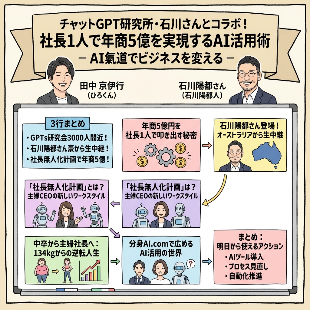 チャットGPT研究所・石川さんとコラボ!社長1人で年商5億を実現するAI活用術 – AI氣道でビジネスを変える 2024年5月9日 / AI活用 こんにちは!3方よしAI共創コンサルタン チャットGPT研究所・石川さんとコラボ!社長1人で年商5億を実現するAI活用術 – AI氣道でビジネスを変える Read Post »