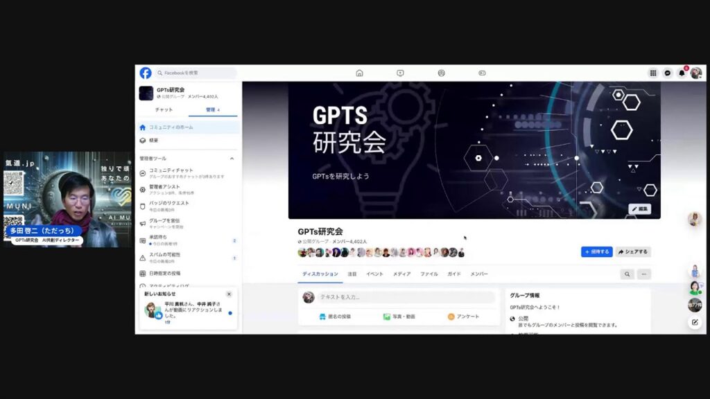 ただっちが運営しているFacebookグループ「GPTs研究会」も、なんとメンバーが4400人を突破したんだって!AIの最新情報は毎日更新されているから、まだの人はぜひチェックしてみてね。