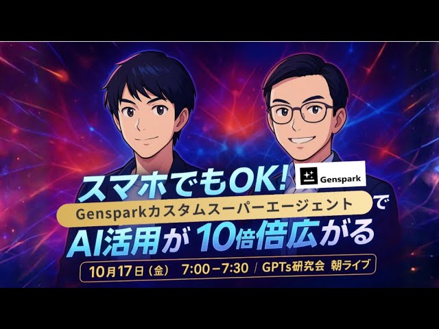 こんにちは、田中啓之(ひろくん)です。今日は「AI氣道」チャンネルで配信された朝のライブ配信を深掘りして、僕ら経営者や働く人が今すぐ使える形で整理・解説します。配信ではGenspark(ジェンスパーク)の最新機能「カスタム・スーパーエージェント(Custom Super Agent)」を中心に、Gemini 3.1やFlowのデモ、スマホで完結するワークフロー、さらには音楽生成やリハビリ支援まで、多彩な実例が紹介されていました。