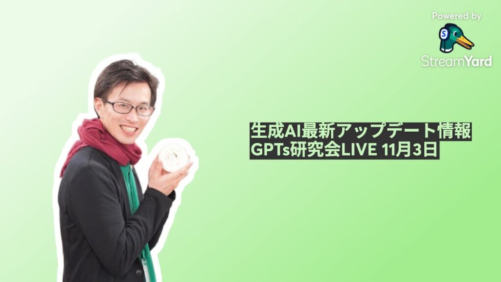 最新AI情報満載!毎日無料朝LIVE実施中!GPTs研究会や、AI氣道.jp無料メルマガでも情報発信しています。ぜひご参加ください!